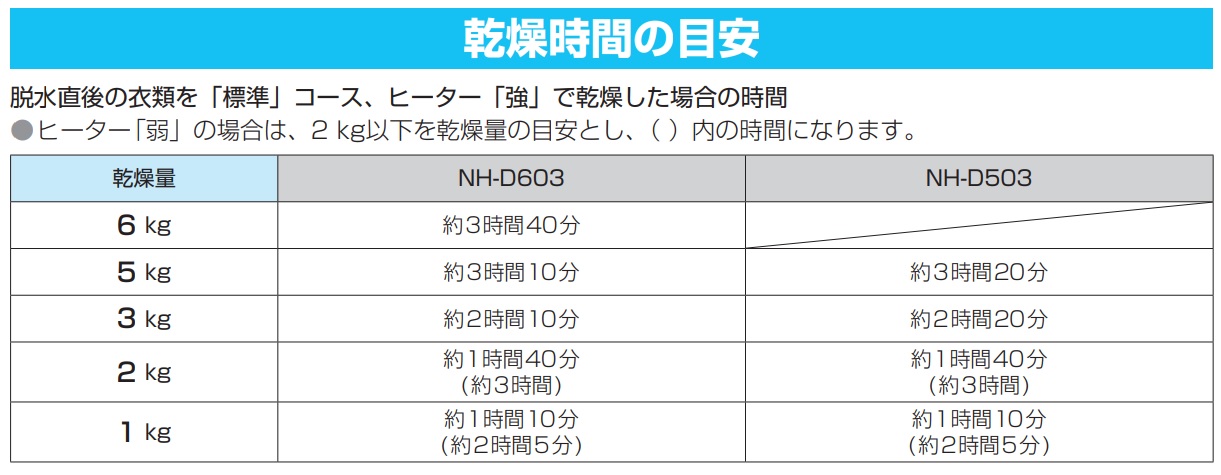 | 乾燥容量 | 6.0kg | 5.0kg |